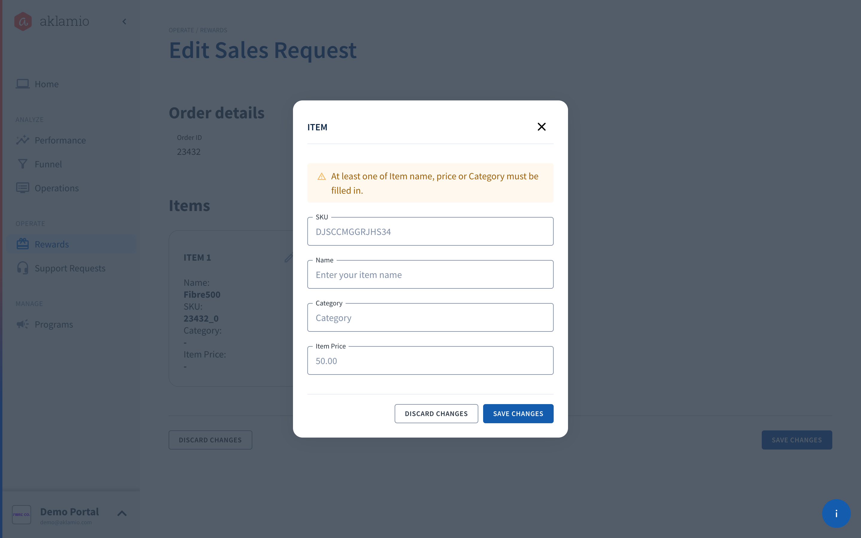 This article explains how to use the "Edit Rewards" feature to modify specific item details within an Open sales request (such as price, name, or category) before you validate (approve or reject) the conversion.