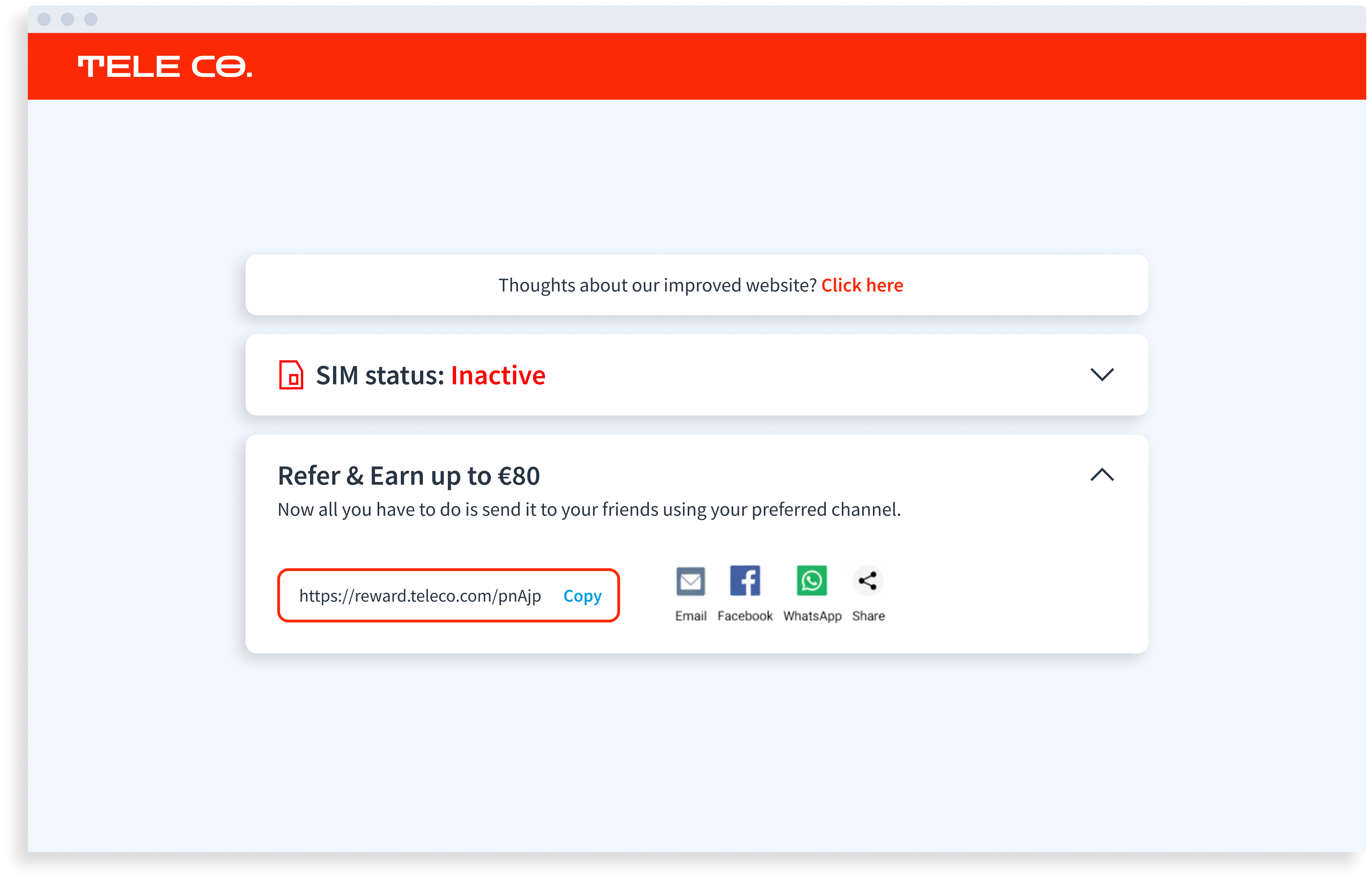 The generated referral link can be added directly into a preferred location within the customer journey, depending on how and where you want to activate referrals.