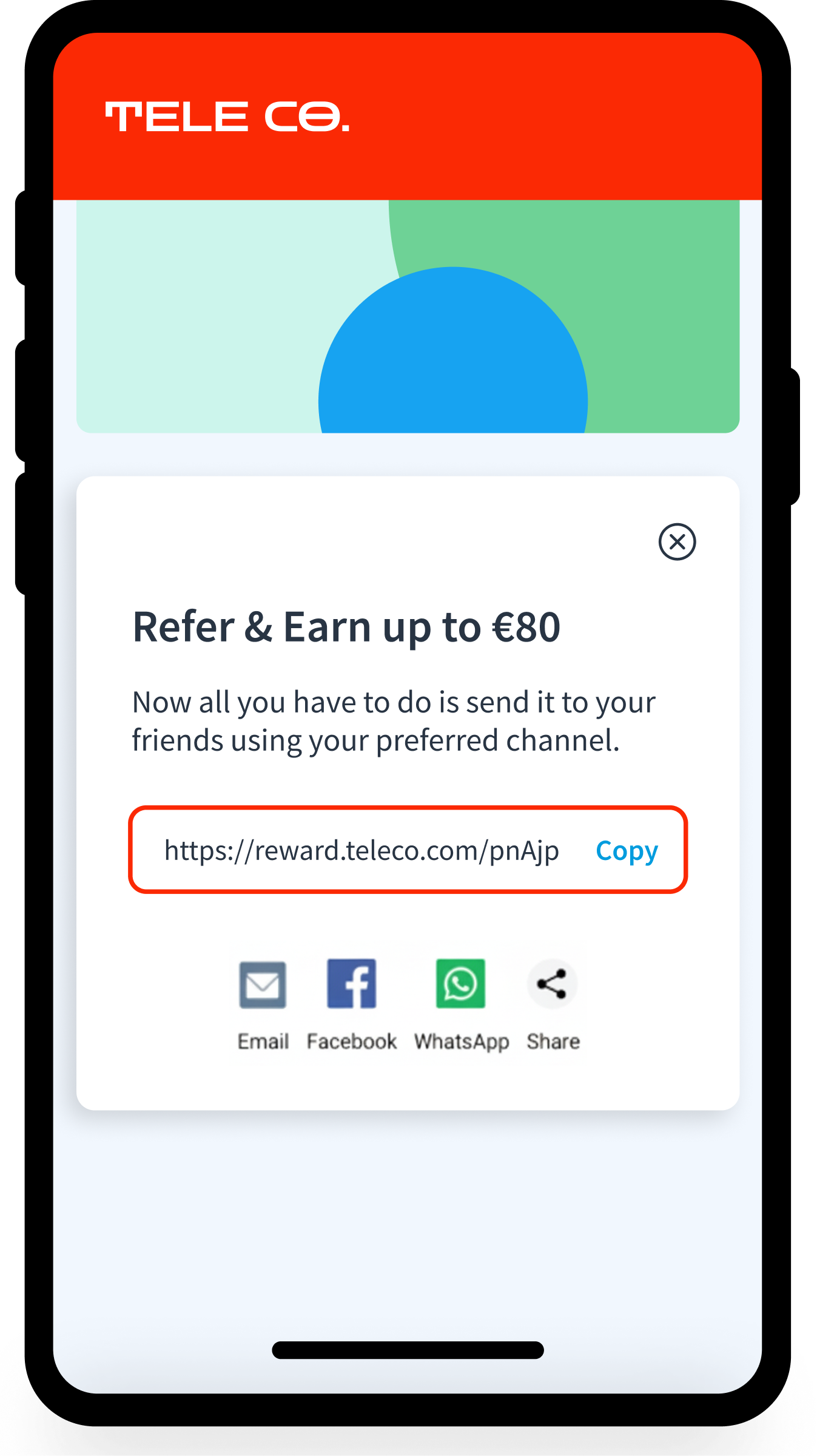 Add the referral link in-app, for example in a “Refer a friend” or “Rewards” section. - Loyalty or rewards pages