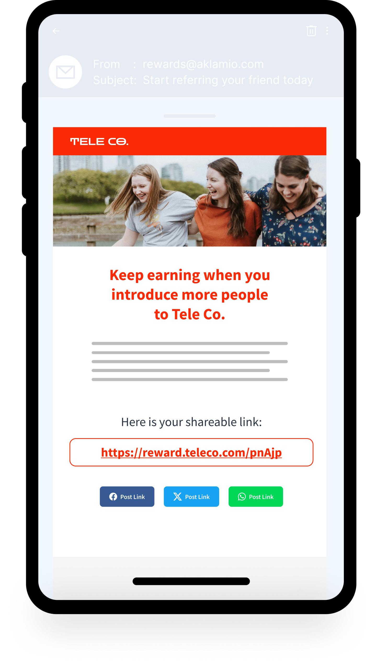 Aklamio’s Link API is designed to make referral programs easier to launch, easier to scale, and easier for customers to use. It combines a simple user flow with a powerful set of functionalities, helping enterprises reduce friction while increasing referral participation.
