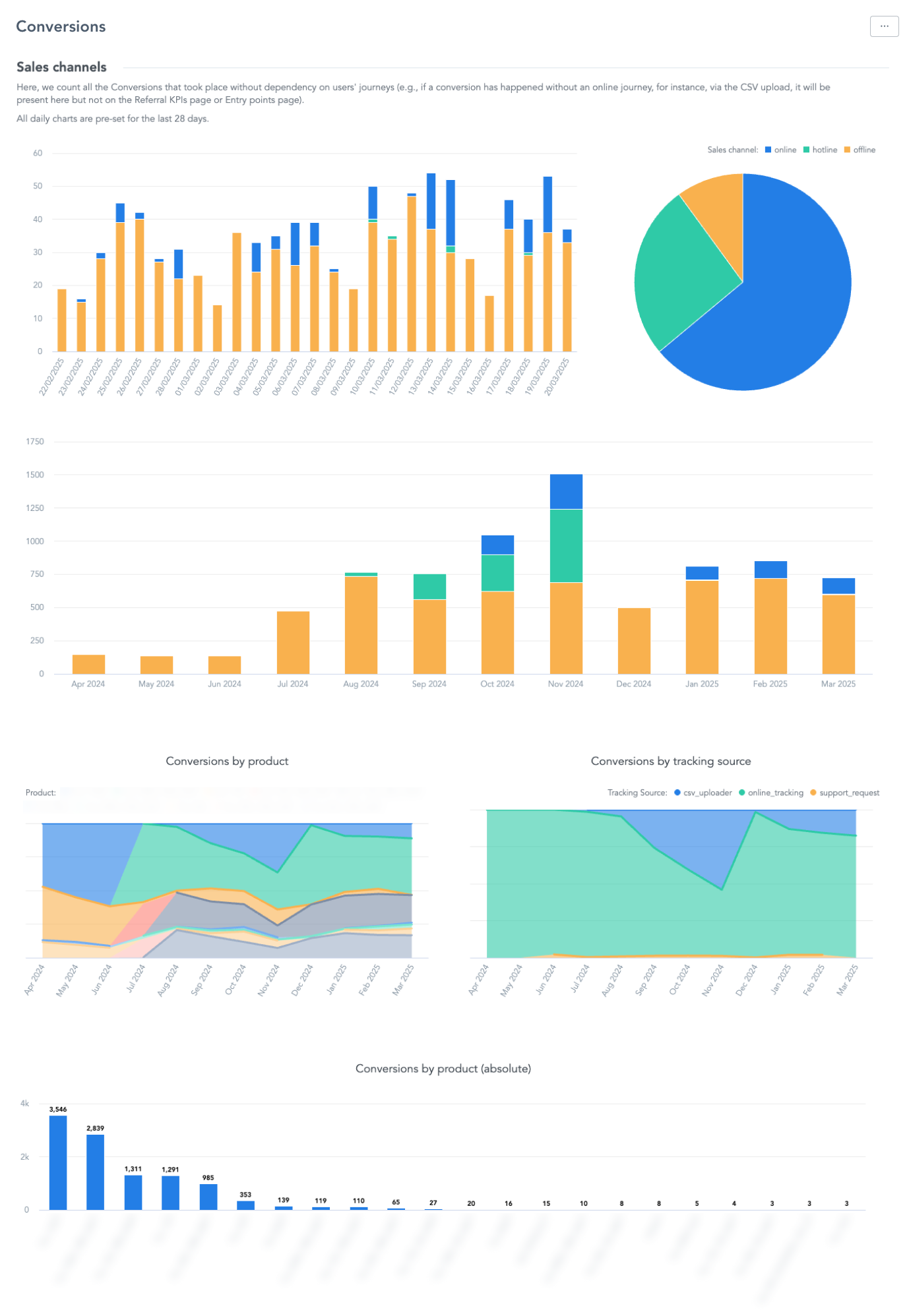 - Tracking Sources: Understand which sources track conversions (e.g., online tracking, CSV uploader, support request).