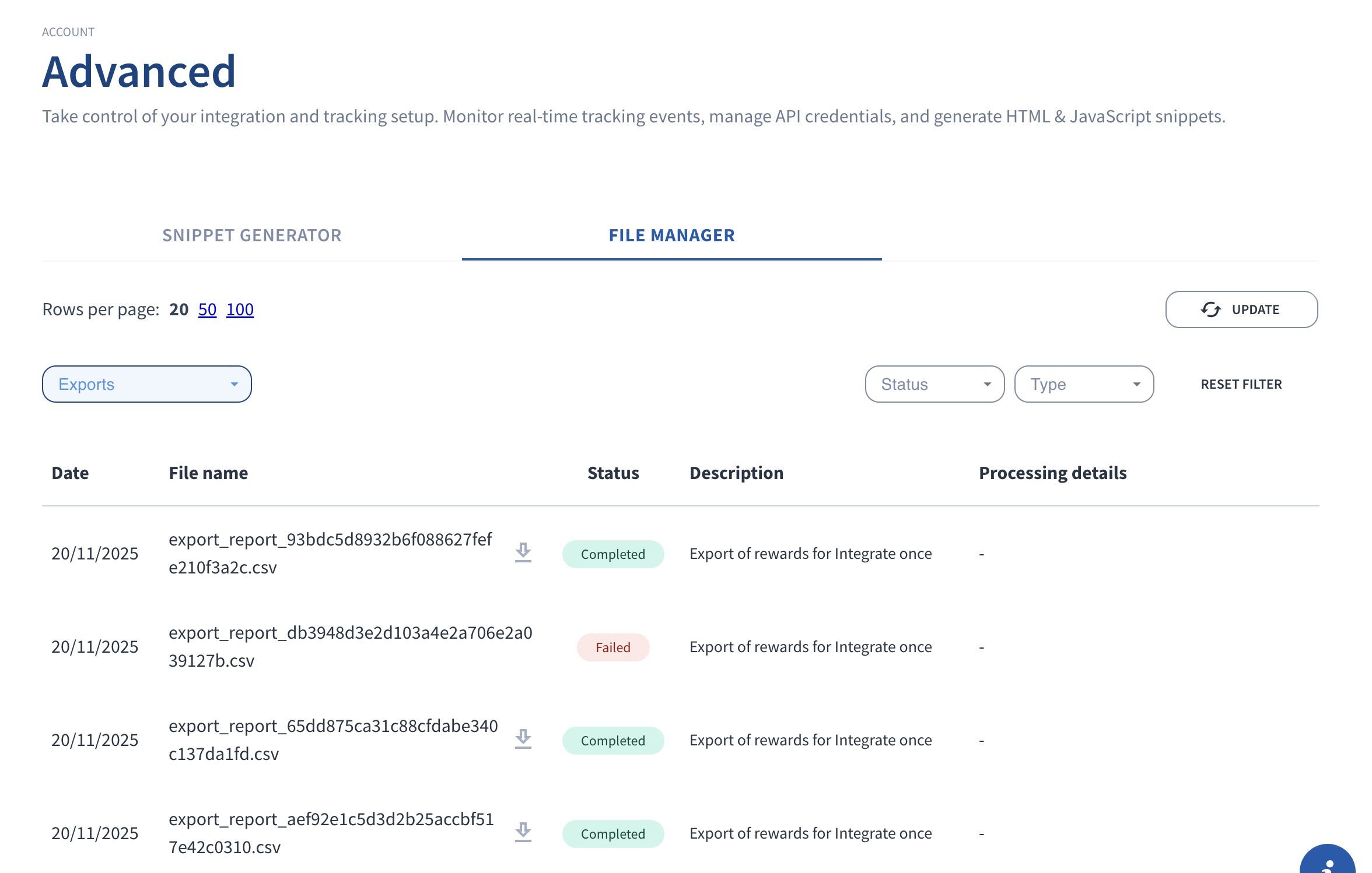 Exporting reward data is essential for validation, internal reporting, and financial reconciliation. Aklamioโs export function follows a "what you see is what you get" principle: the specific filters you apply to your view determine exactly what is included in your CSV file.