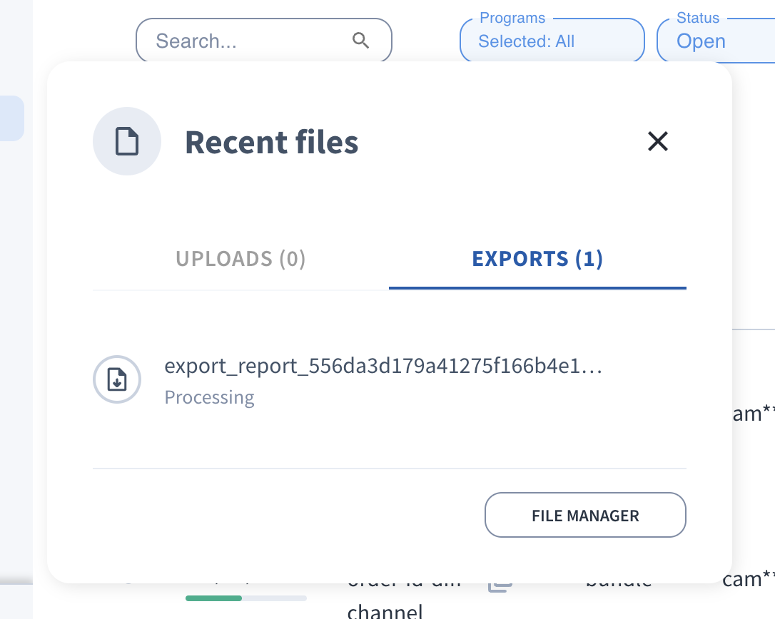 Updated Capabilities: We have improved the export process to support much larger datasets. The previous file size limit has been virtually removed. To accommodate this, exports are now processed in the background and delivered via the new File Manager UI.