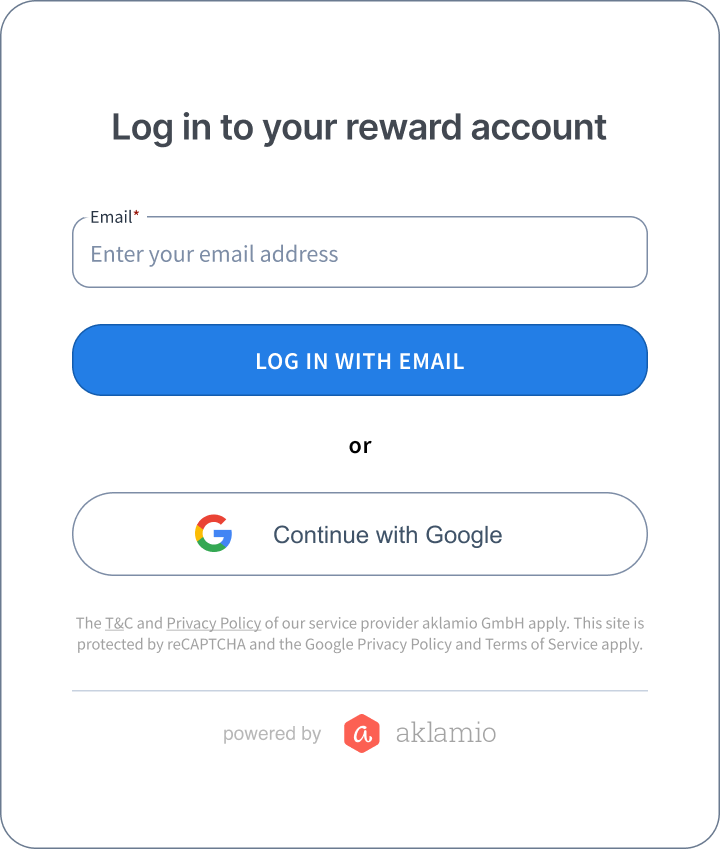 For users who prefer social login, Aklamio also supports Google Single Sign-On (SSO).
